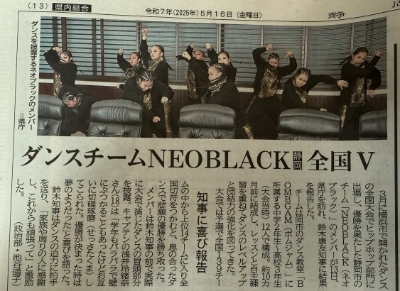 静岡朝日テレビ「とびっきり!しずおか」で、NEOBLACKのJHC DANCE CONTEST全国優勝について取り上げていただき、5月14日に放送されました。